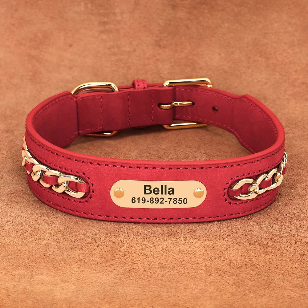 Graviertes Lederhalsband mit Namen & Nummer – Personalisiertes Echtleder-Halsband für Hunde