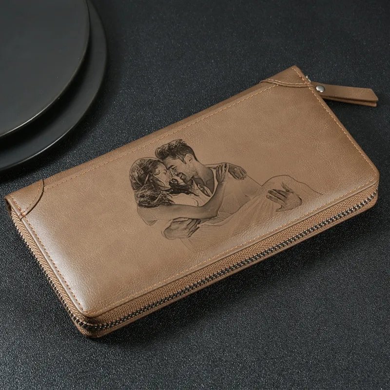 Gravierte Damen-Brieftasche mit eigenem Foto & Wunschtext – Personalisiertes Münzfach-Portemonnaie