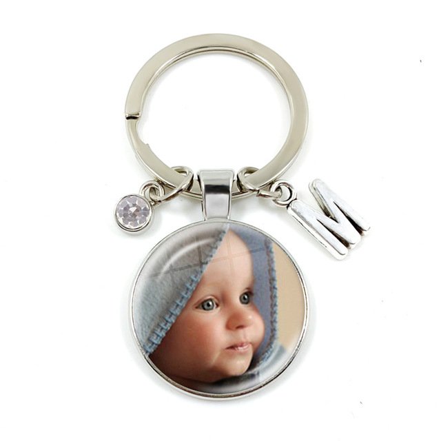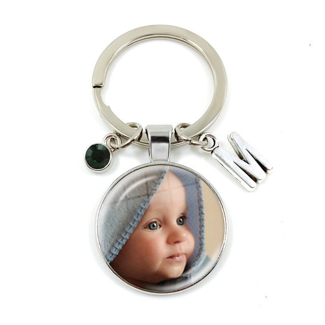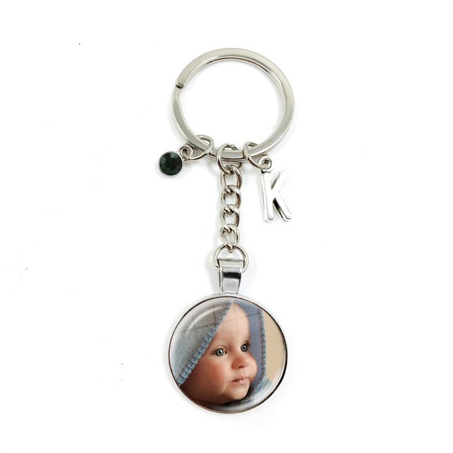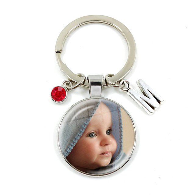 Foto-Schlüsselanhänger mit Geburtsstein – Personalisierter Anhänger mit eigenem Bild