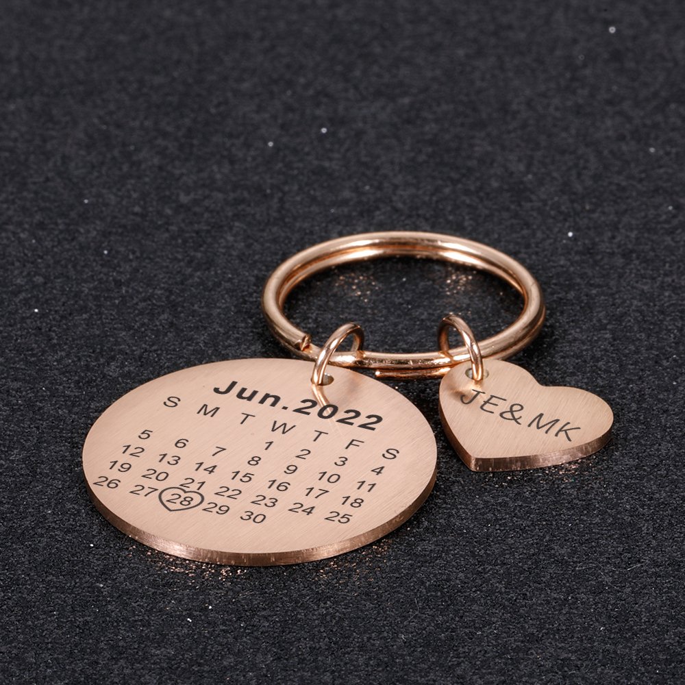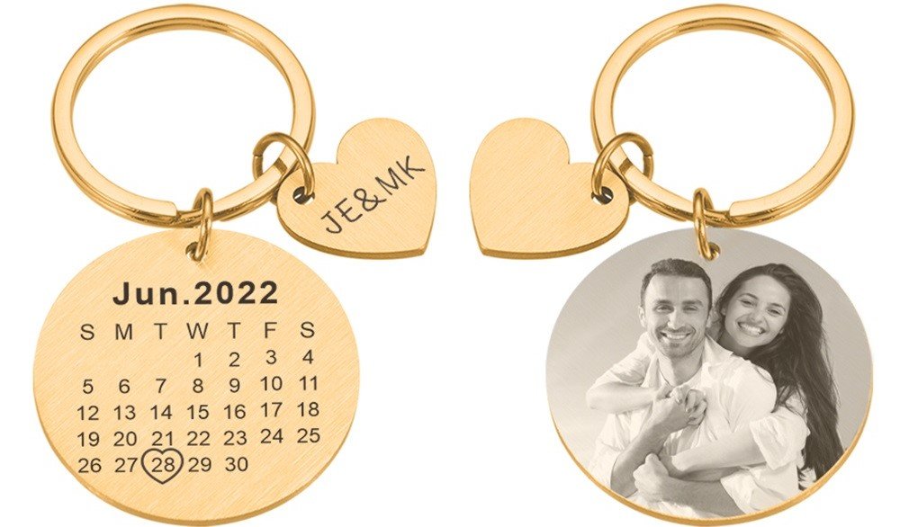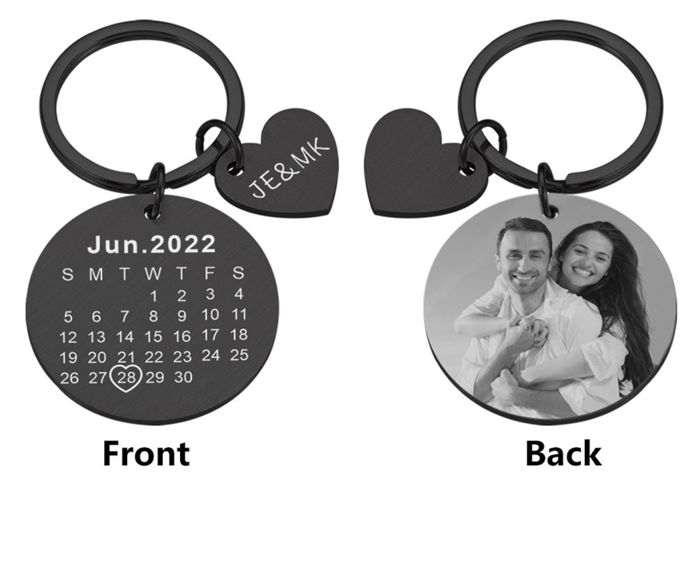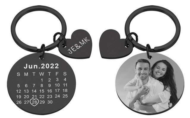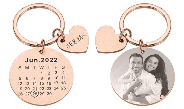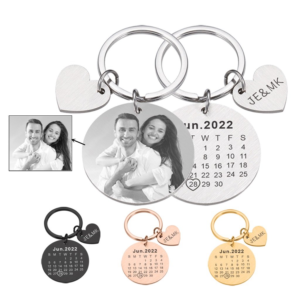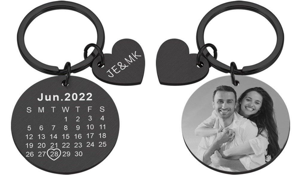 Gravierter Foto-Schlüsselanhänger mit eigenem Datum – Personalisierter Pärchenanhänger aus Edelstahl