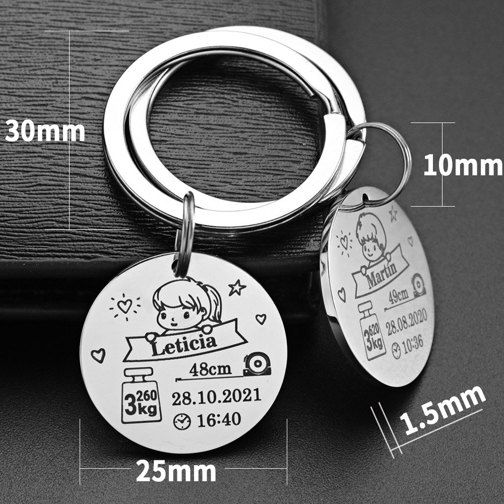 Baby-Schlüsselanhänger mit Gravur – personalisiert mit Name, Größe & Geburtsdatum
