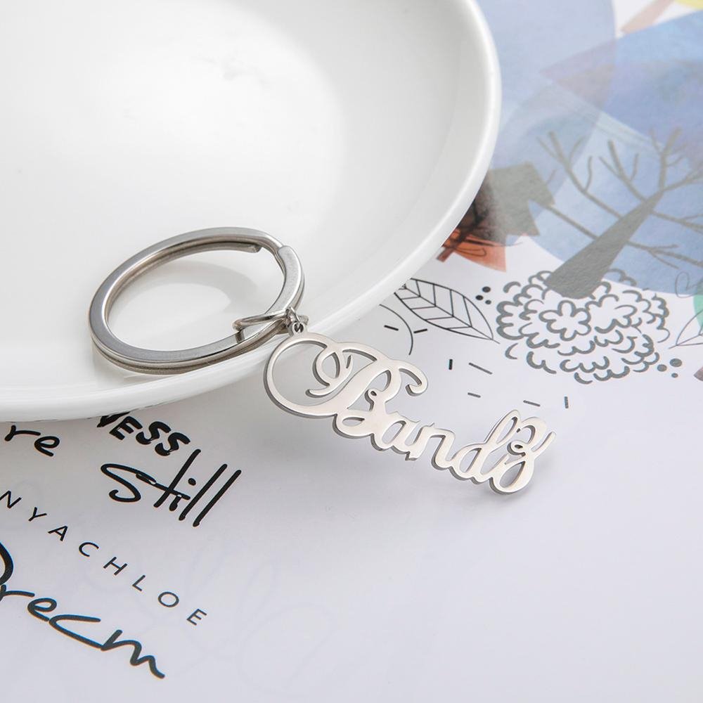 Personalisierter Schlüsselanhänger mit Textmotiv aus Edelstahl
