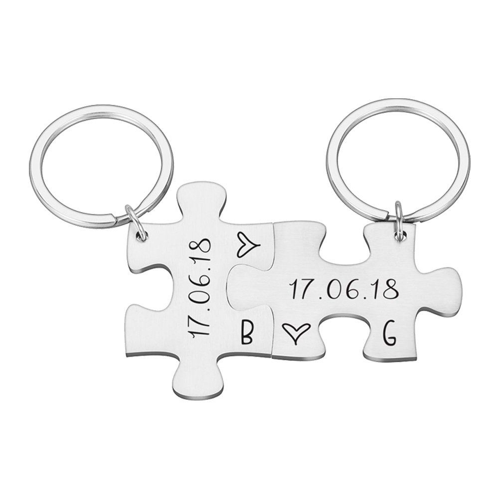 Puzzle Schlüsselanhänger - 2-teilig mit Textgravur Datum