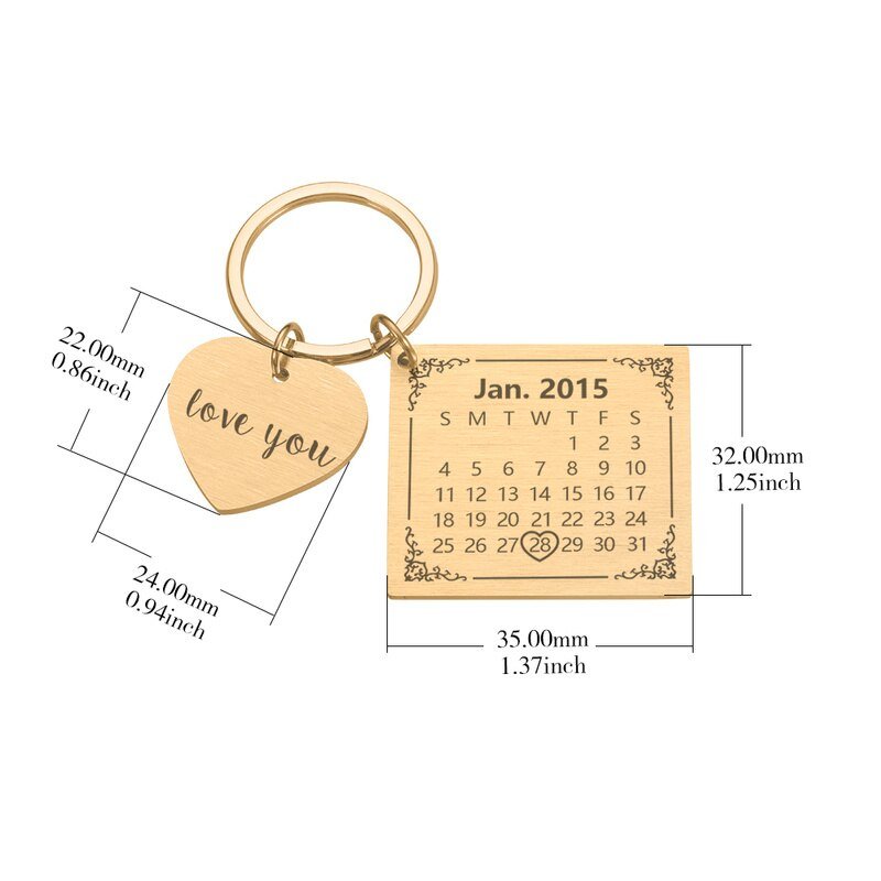 - Personalisierter Schlüsselanhänger mit Datum Gravur