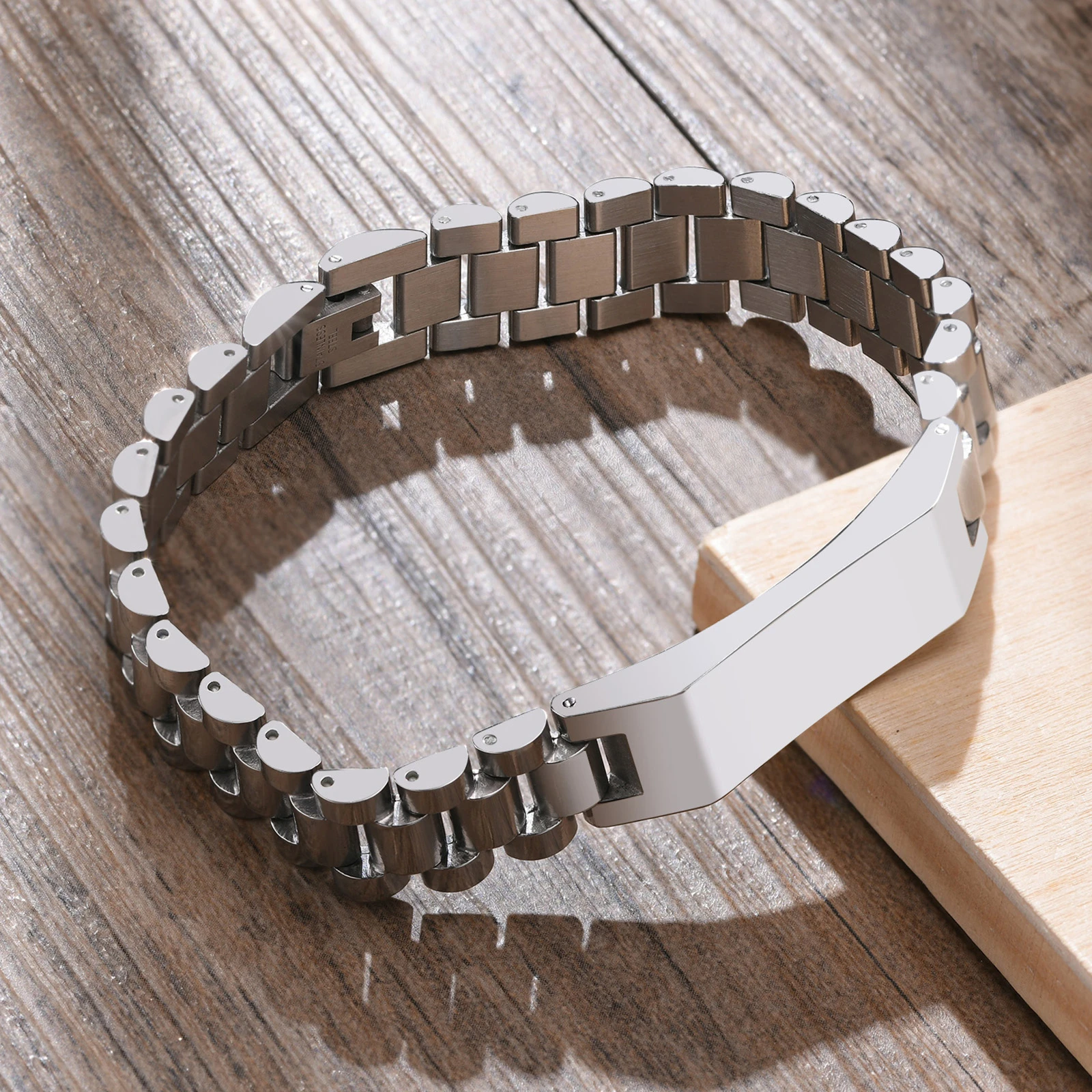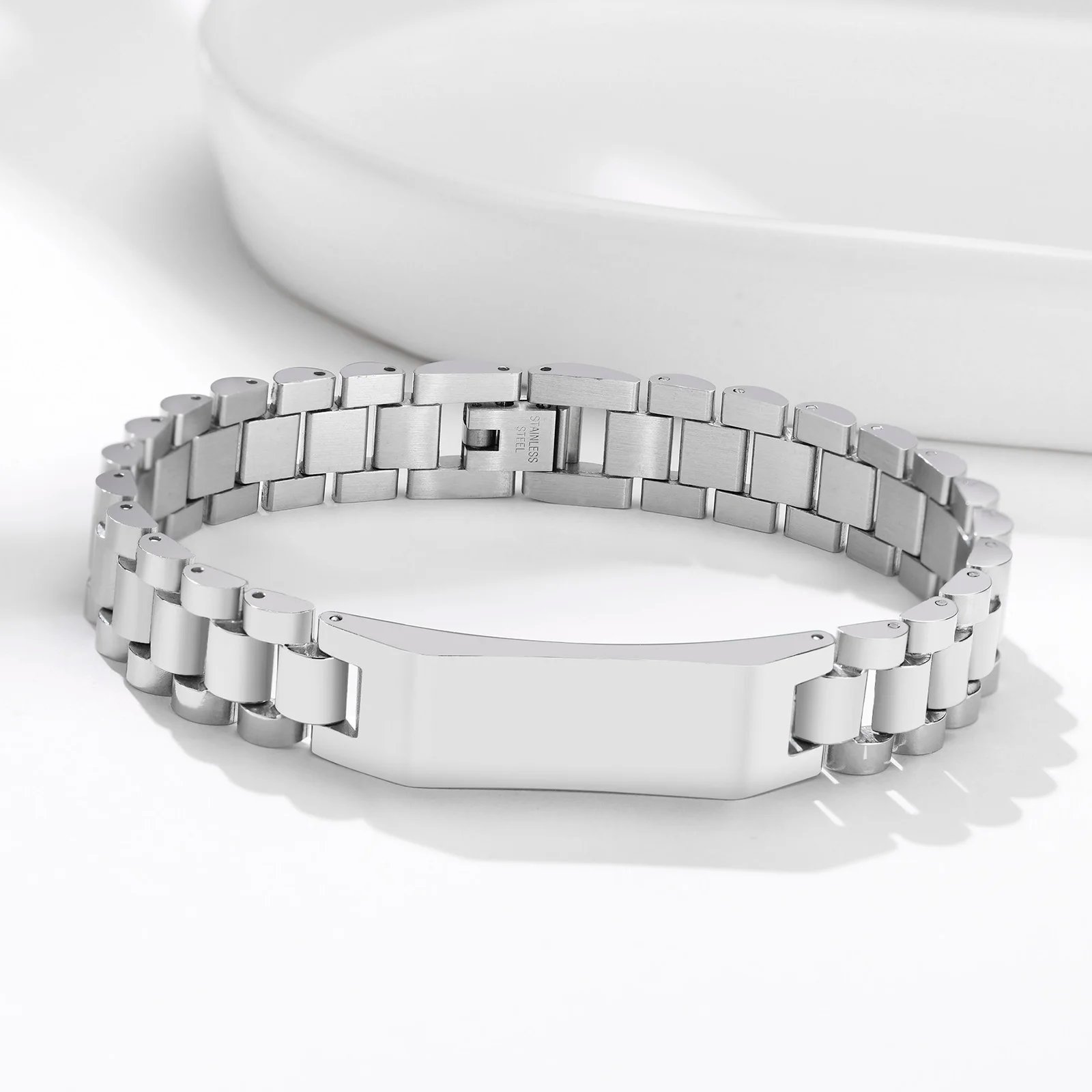 Herrenarmband Personalisiert mit Textgravur | Edelstahl Armband mit eigenem Wunschtext selber gestalten | Foto-Schmuck Gravur-Armband