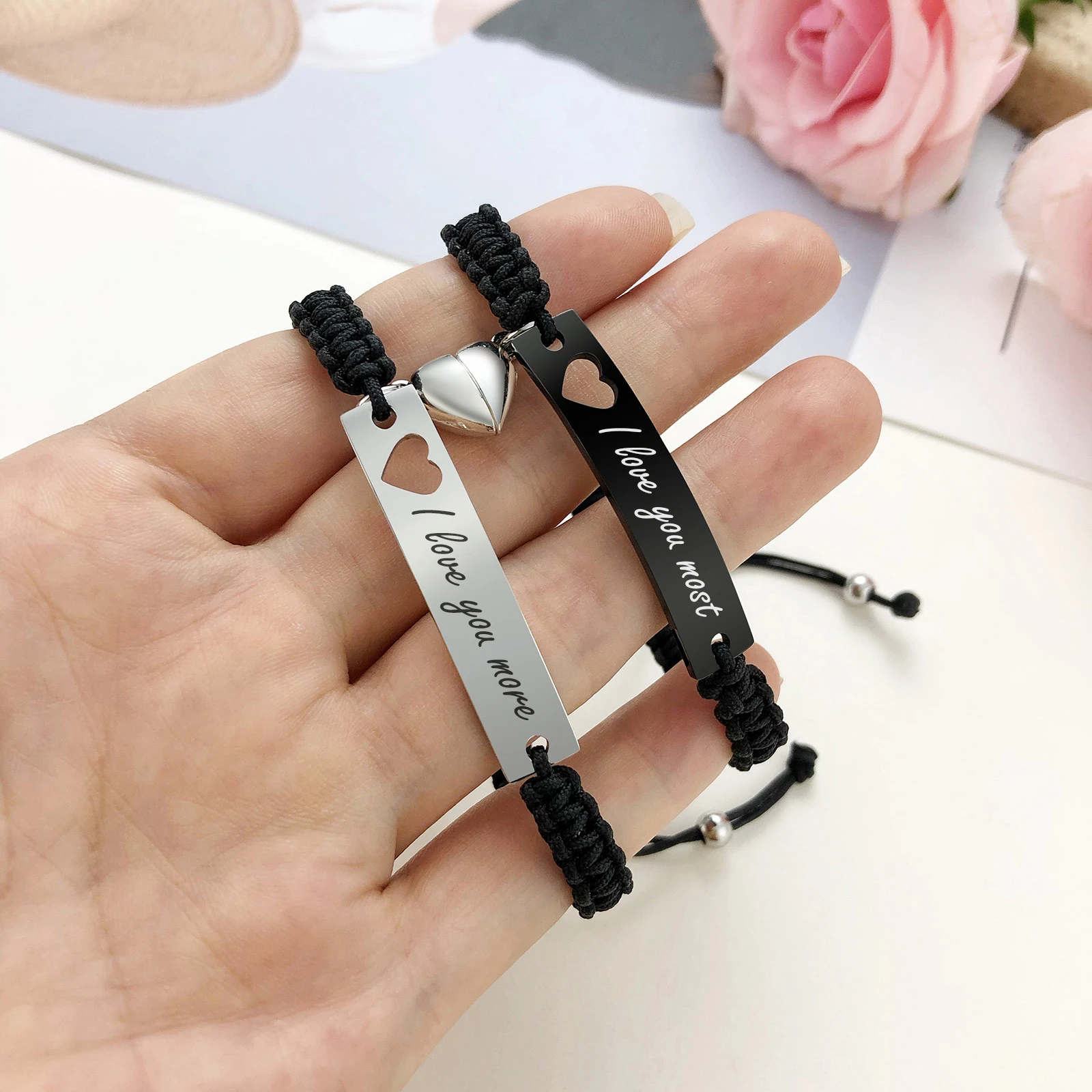 Zeigt eure Verbundenheit auf stilvolle und persönliche Weise – mit diesem 2er Set gravierbarer Pärchenarmbänder. Jedes Armband trägt eine hochwertige Edelstahlplatte, die individuell mit eurem Wunschtext graviert wird. Ideal für Paare, beste Freunde oder Familienmitglieder, die ein besonderes Zeichen ihrer Beziehung bei sich tragen möchten.
