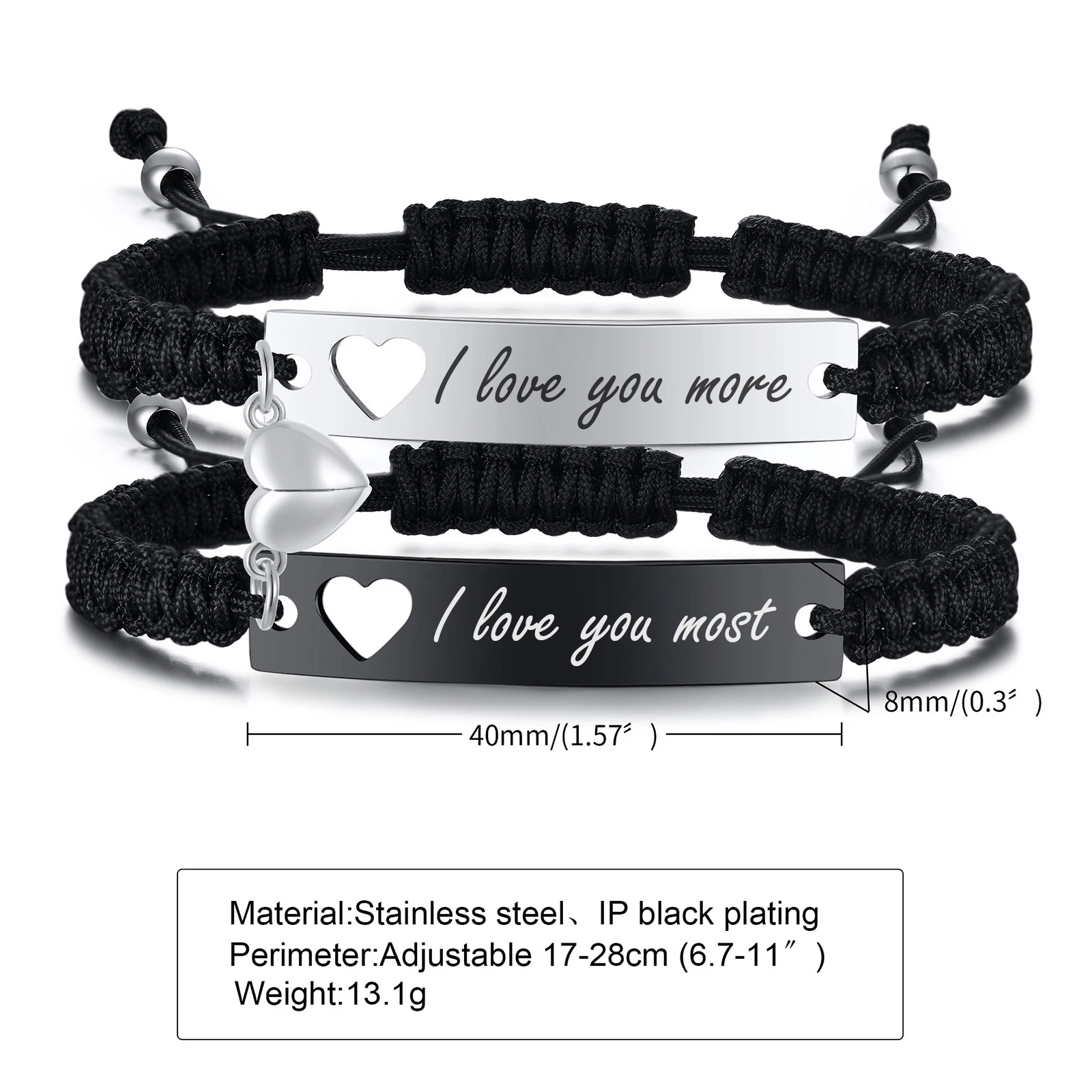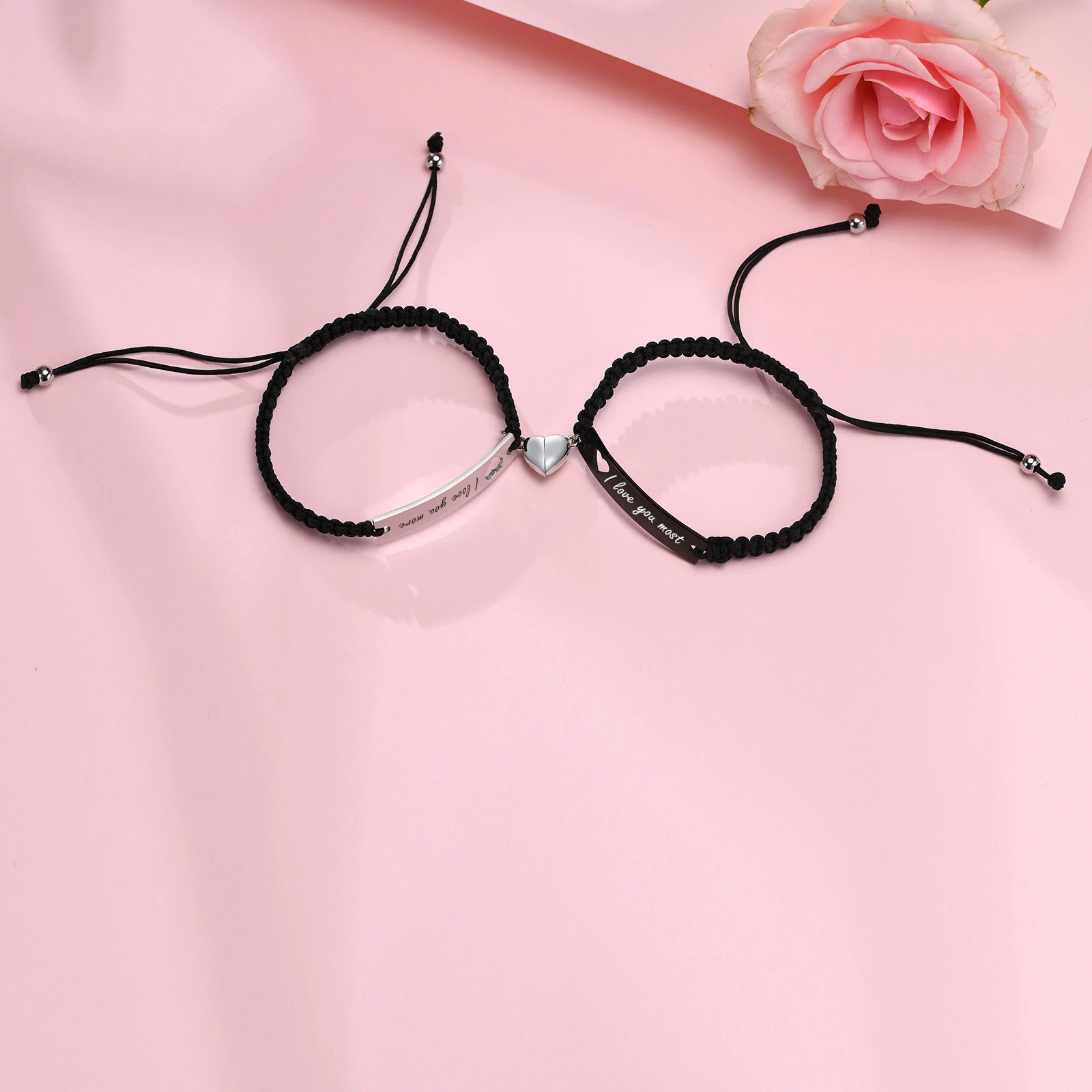 2er Set – Gravierte Pärchenarmbänder mit eigenem Wunschtext – Personalisierte Armbänder (17–28 cm)
