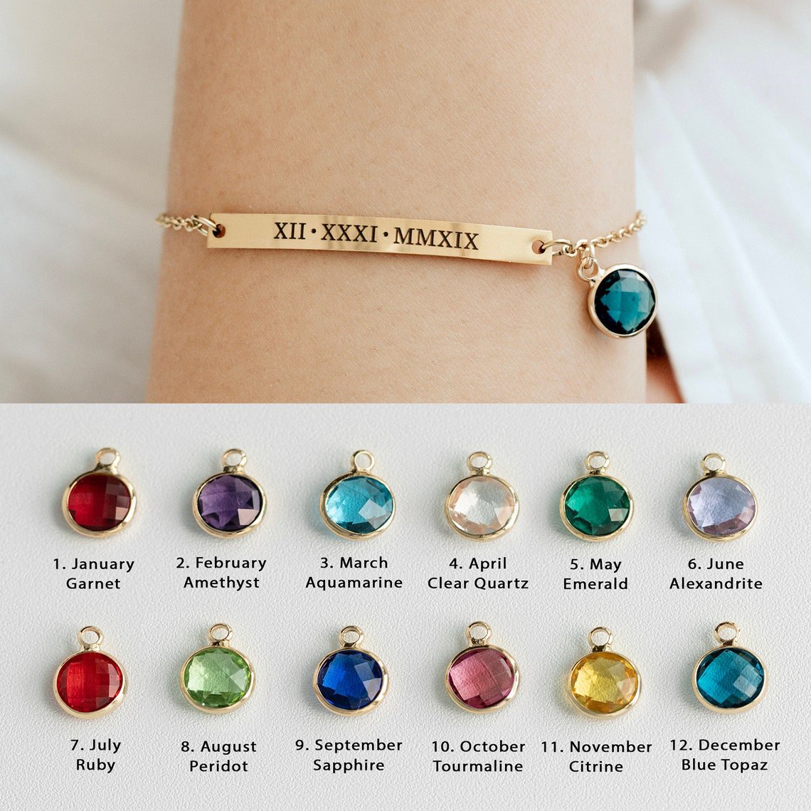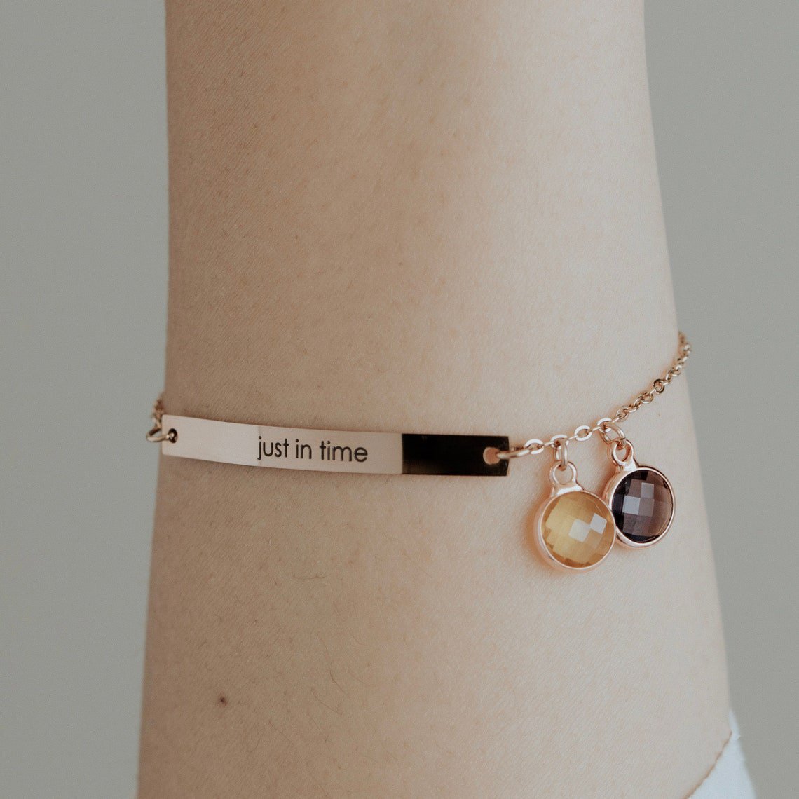Geburtsstein-Armband mit Textgravur – personalisiert, verstellbar (18–23 cm)