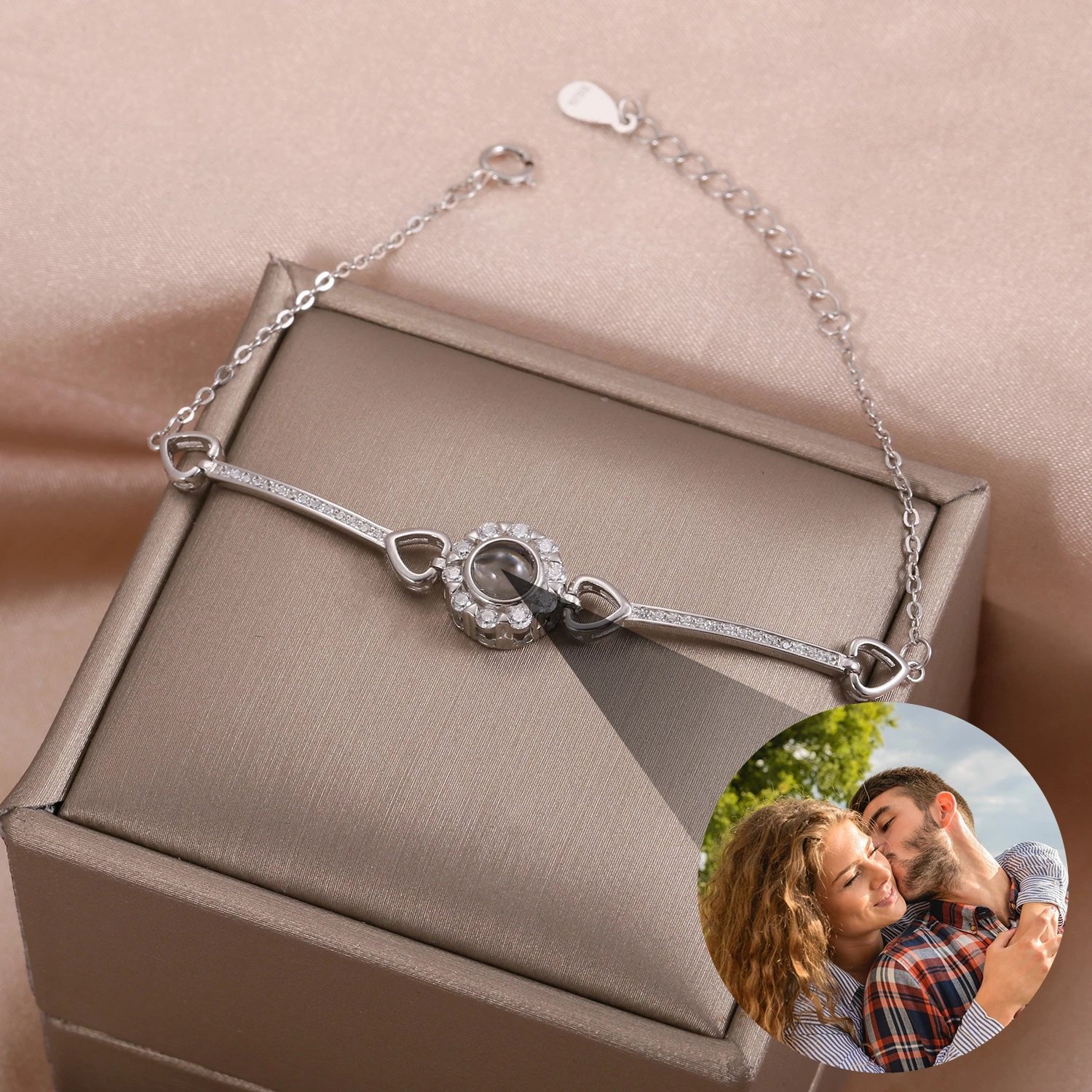 Armband mit Fotoprojektion – Personalisiertes Zirkonia-Damenarmband mit eigenem Bild im Inneren