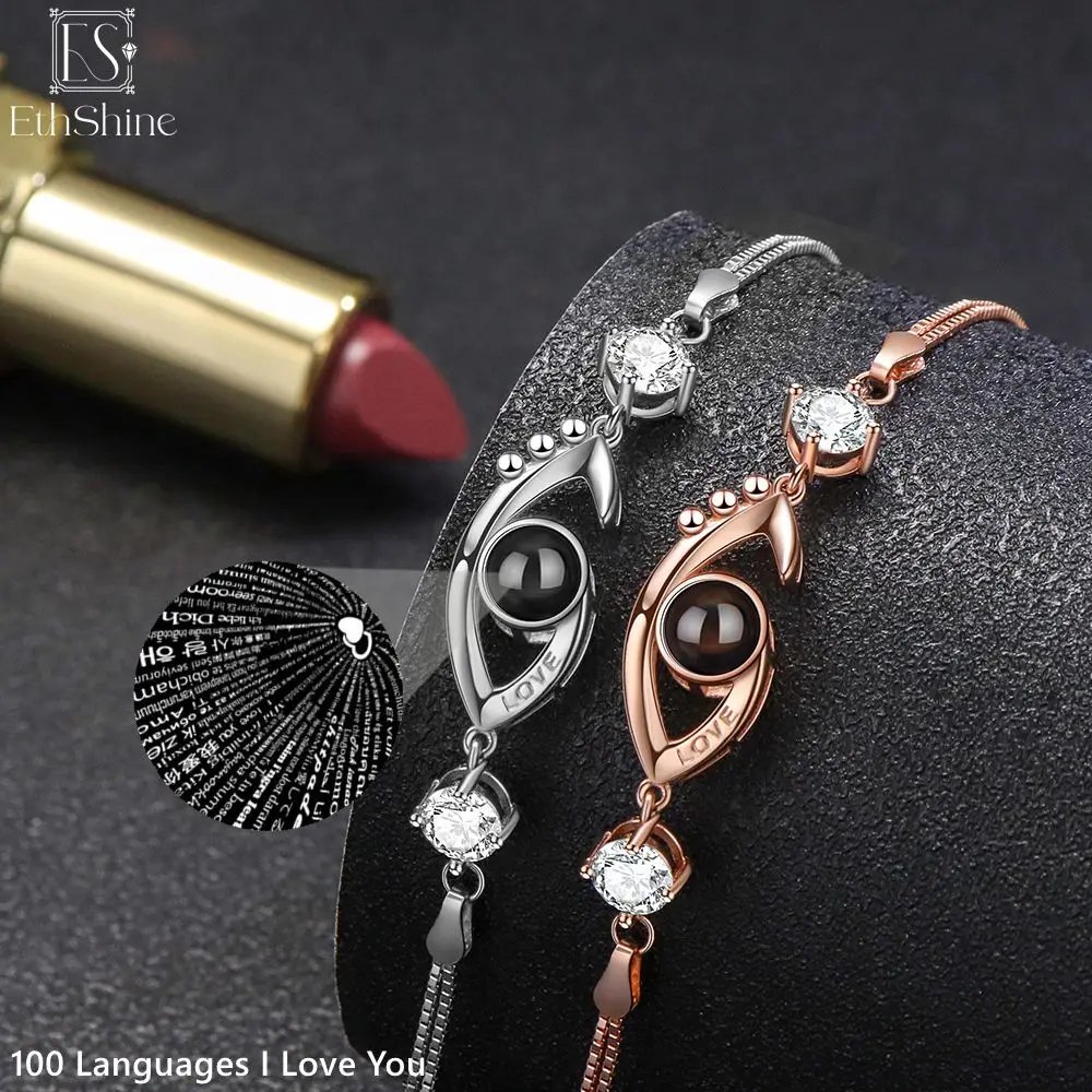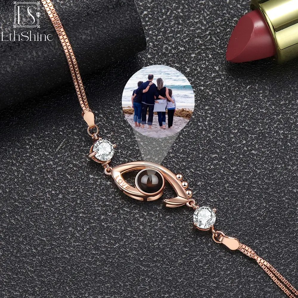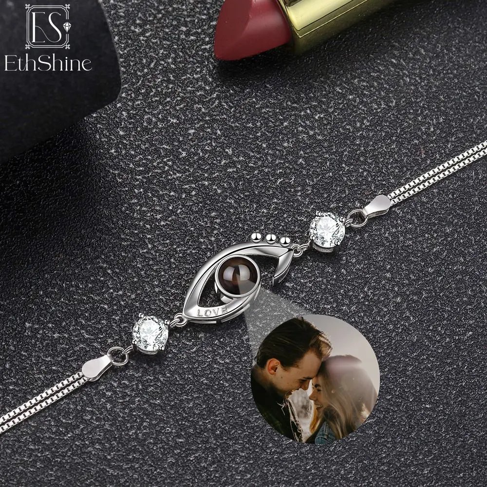 Augen-Armband mit Fotoprojektion aus 925er Sterling Silber – personalisierbar, 18–23 cm