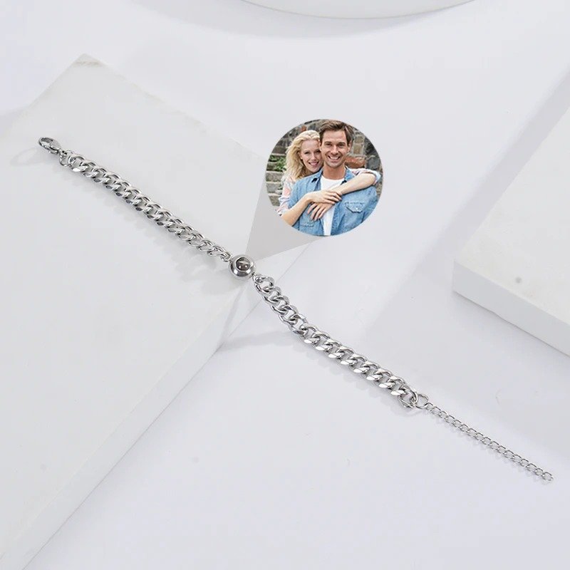 Ein modernes Schmuckstück mit persönlicher Bedeutung – dieses Edelstahlarmband mit Fotoprojektion verbindet elegantes Design mit emotionalem Wert.