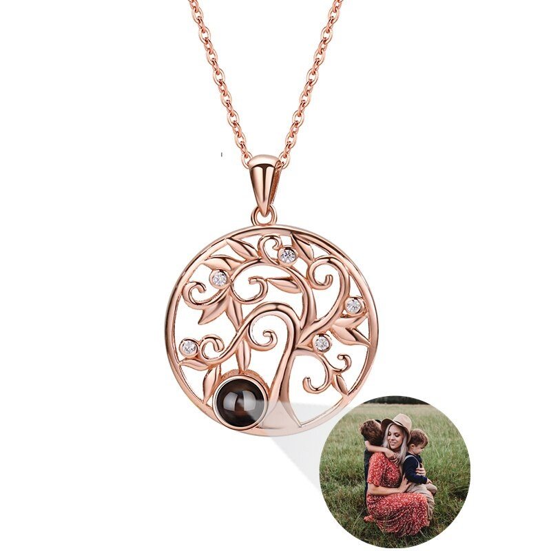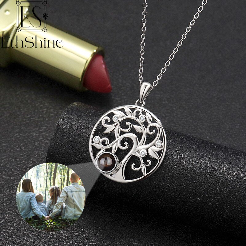 Die Baum des Lebens Halskette mit Fotoprojektion ist ein symbolträchtiges Schmuckstück aus hochwertigem 925er Sterling Silber. Diese personalisierte Halskette ermöglicht es dir, ein eigenes Bild im Inneren des Anhängers einzufügen, was sie zu einem ganz besonderen und individuellen Accessoire macht.