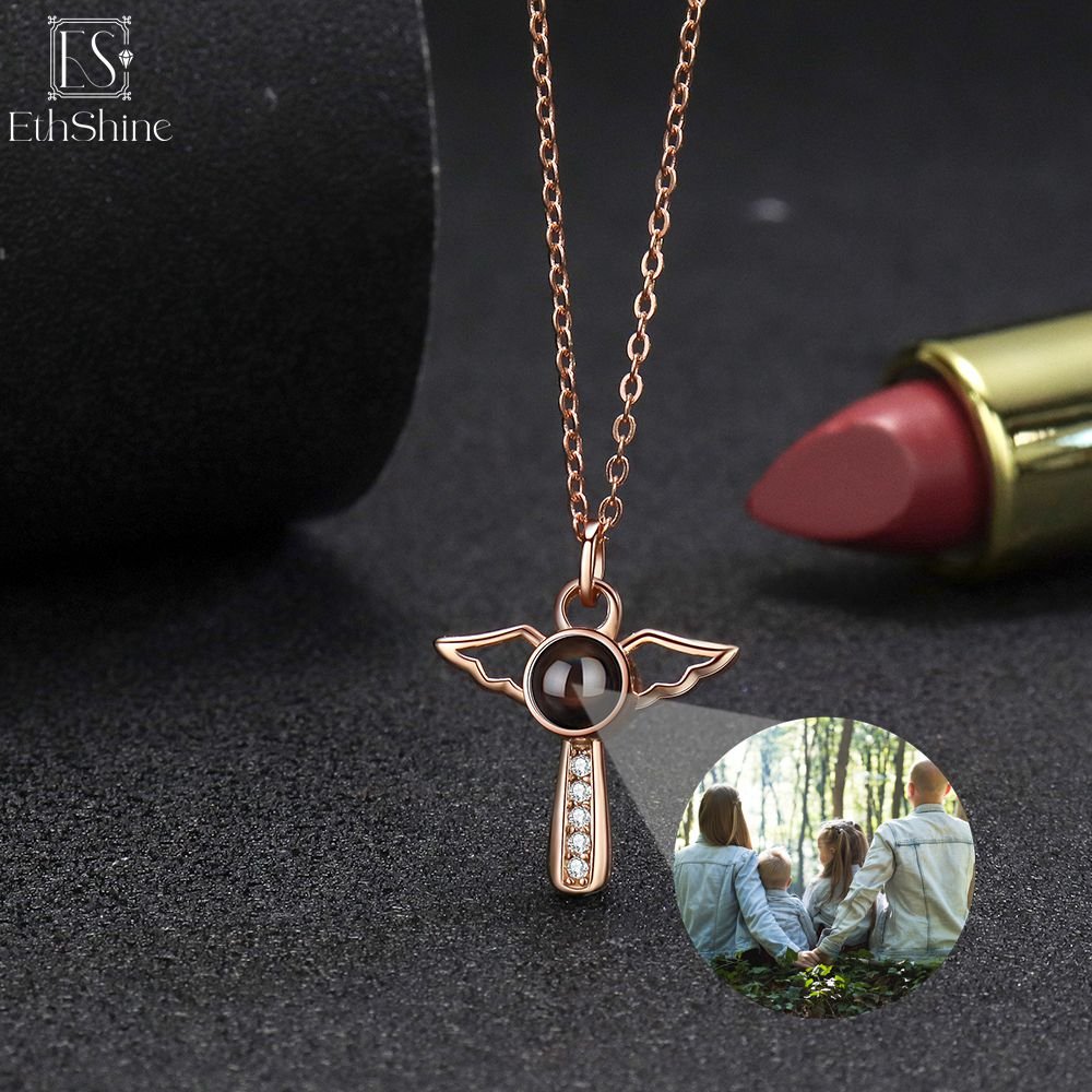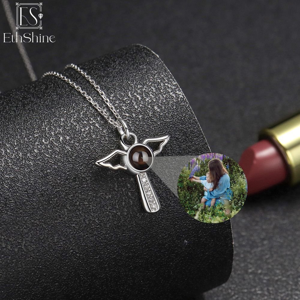 Engelsflügel-Halskette mit Fotoprojektion aus 925er Sterling Silber – personalisiert