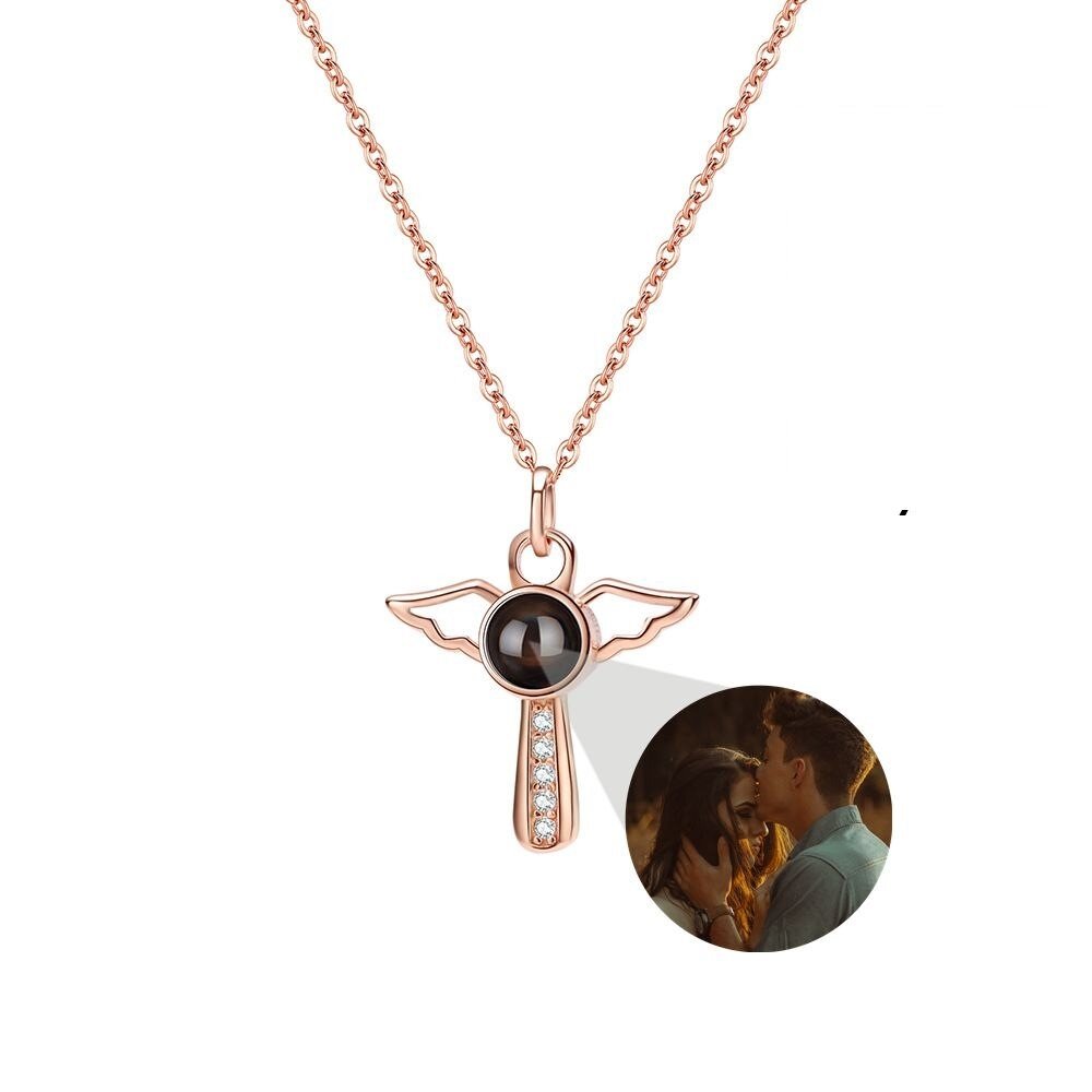 Engel-Flügel Halskette Zirkonia mit Fotoprojektion