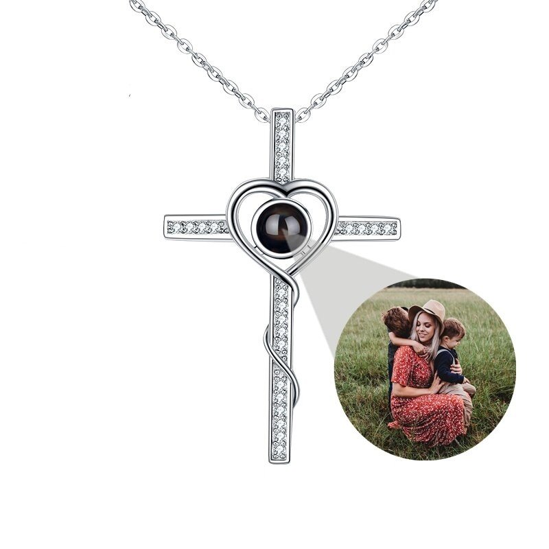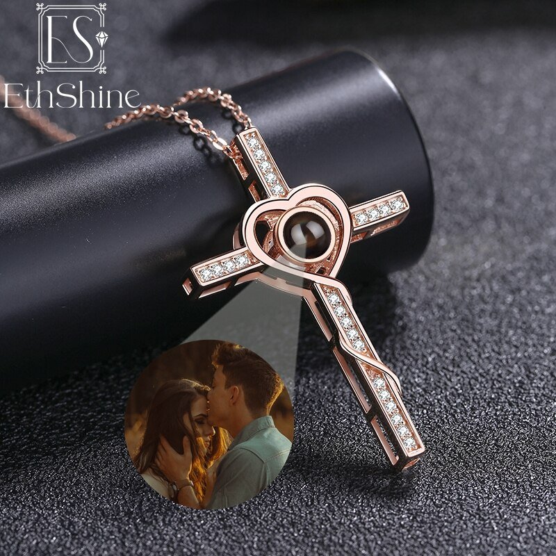 Zirkonia Kreuz Halskette mit Fotoprojektion