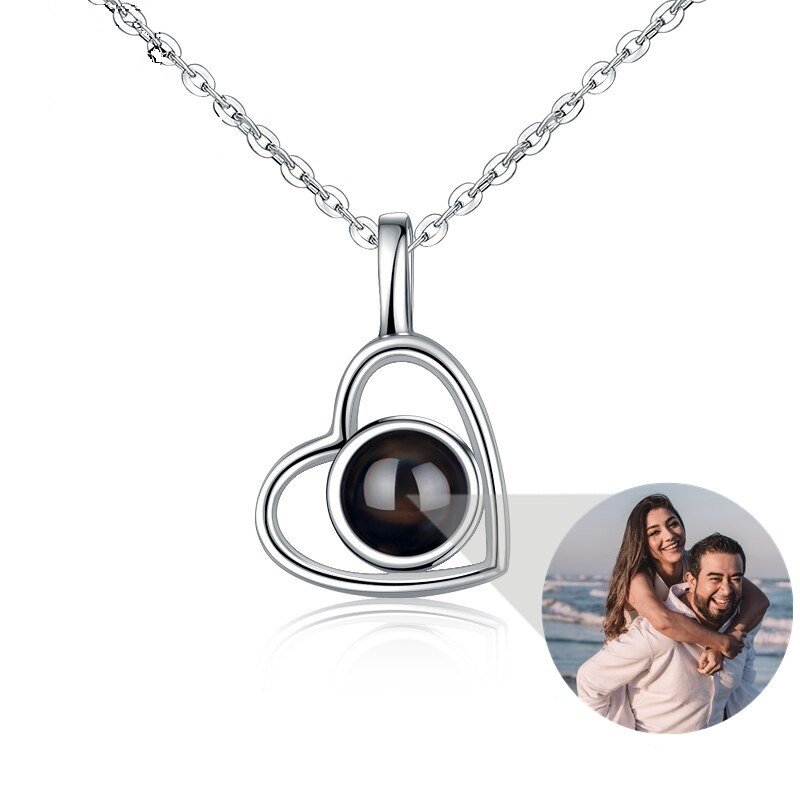 Herz-Projektionshalskette mit eigenem Foto – Personalisierte Halskette mit Bild im Inneren