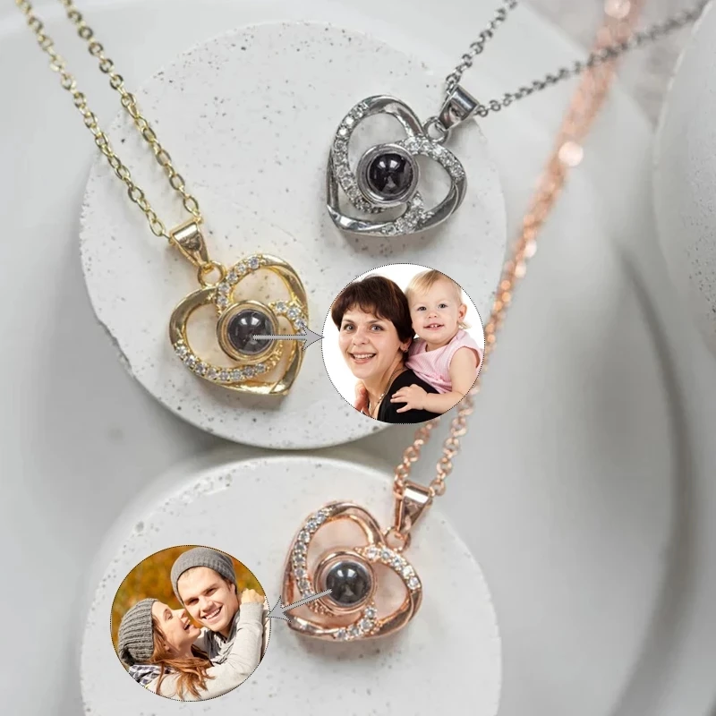 Personalisierte Herz Zirkonia Halskette mit Fotoprojektion