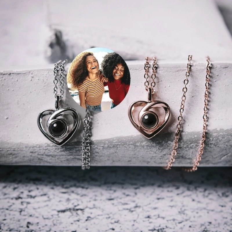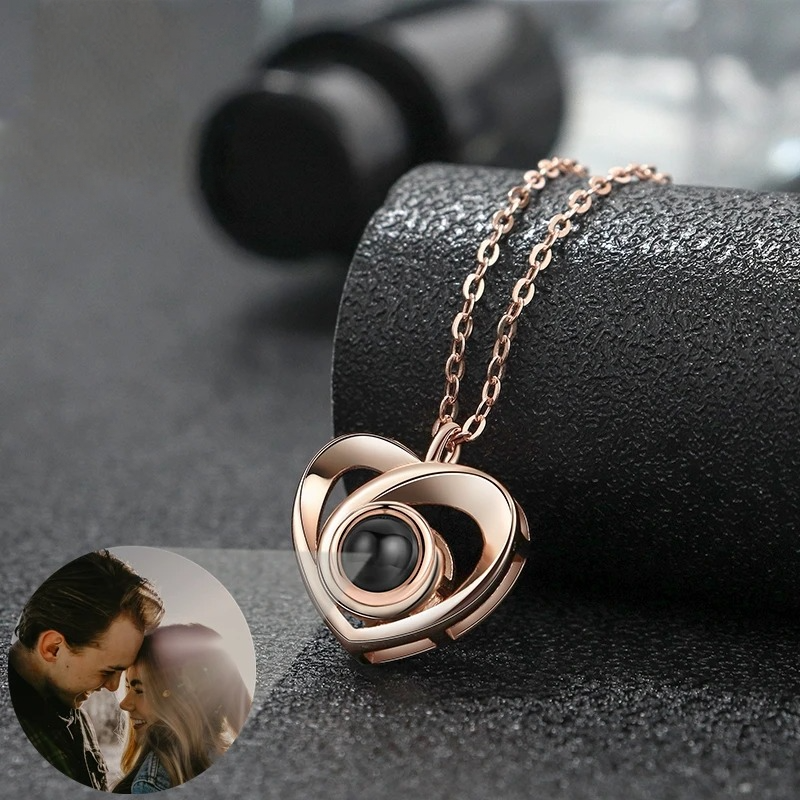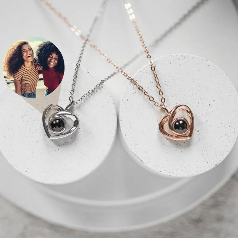 Herzkette mit Fotoprojektion – Personalisierte Damen-Halskette mit eigenem Bild im Inneren