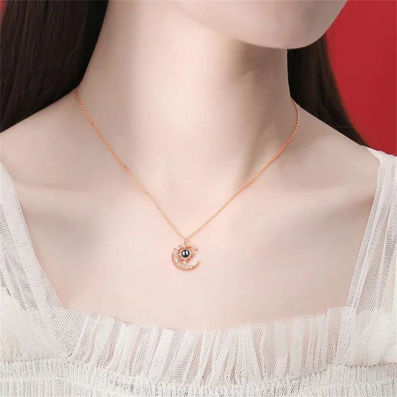 Unsere Projektion Halskette mit personalisierter Mond-Halskette bietet eine einzigartige Möglichkeit, Ihre Emotionen und Erinnerungen stilvoll zu präsentieren und für immer festzuhalten.