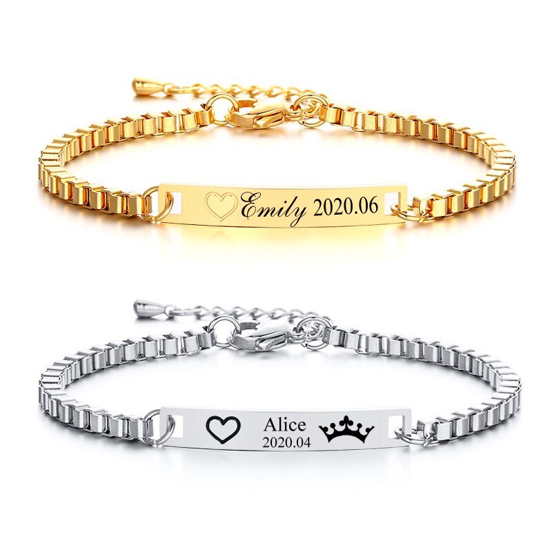Armband mit Gravur, Edelstahl Kinderarmband Namensgravur, Gliederarmband personalisieren